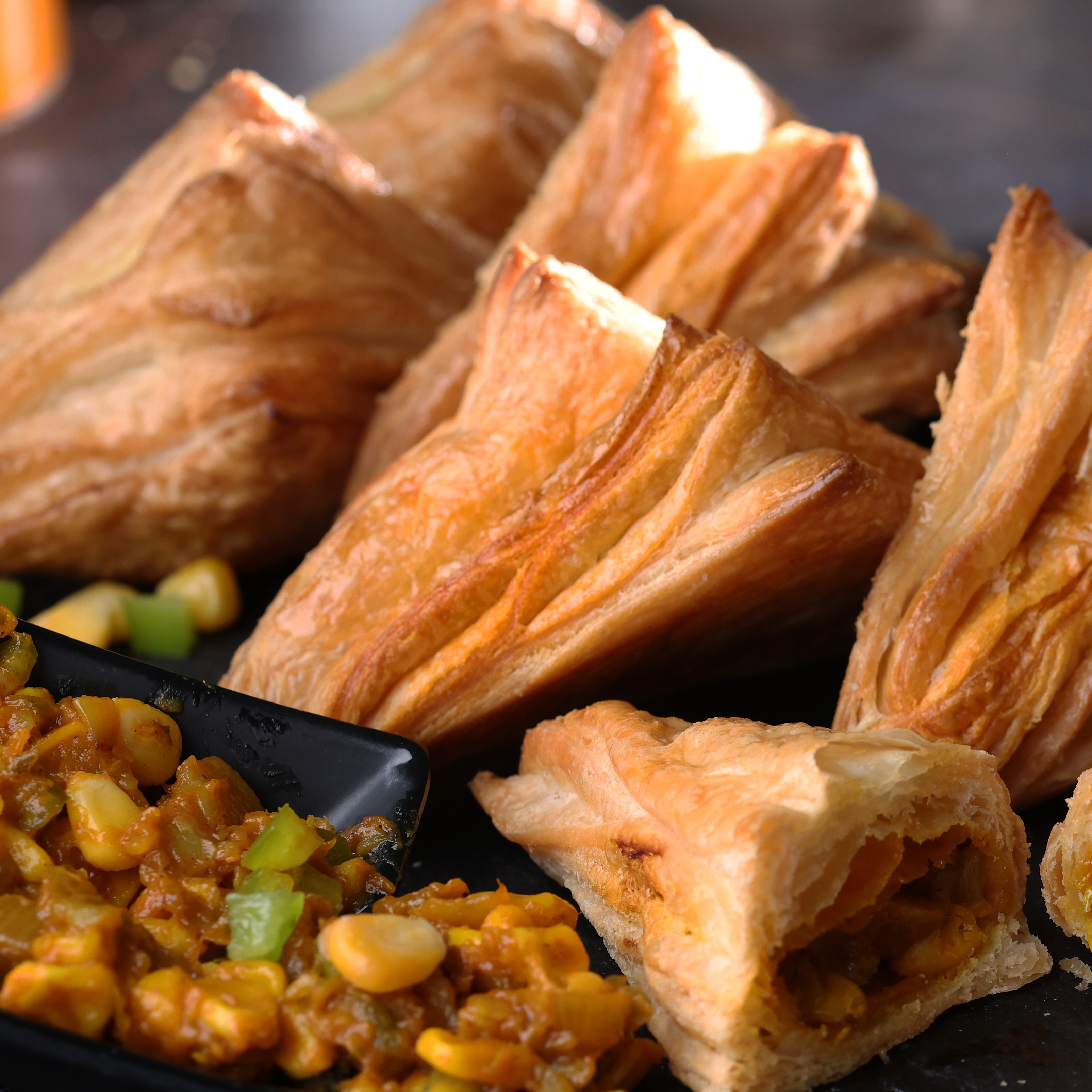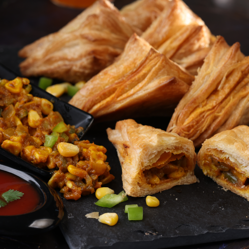 These flaky and buttery pastries are filled with a delicious mixture of sweet corn kernels and crunchy capsicum (bell pepper).